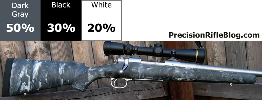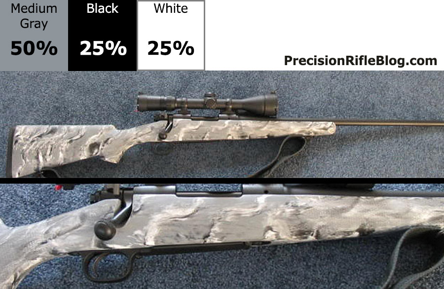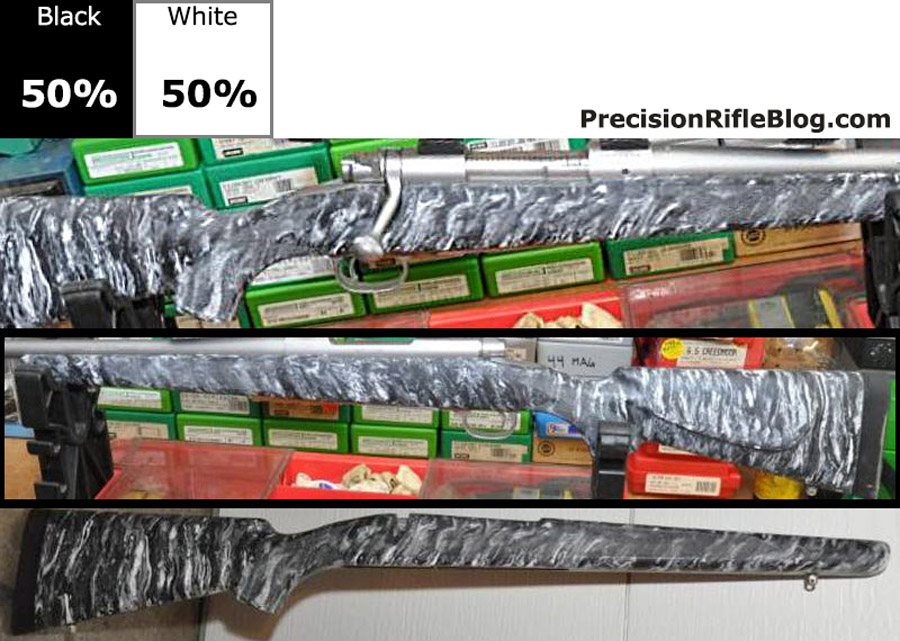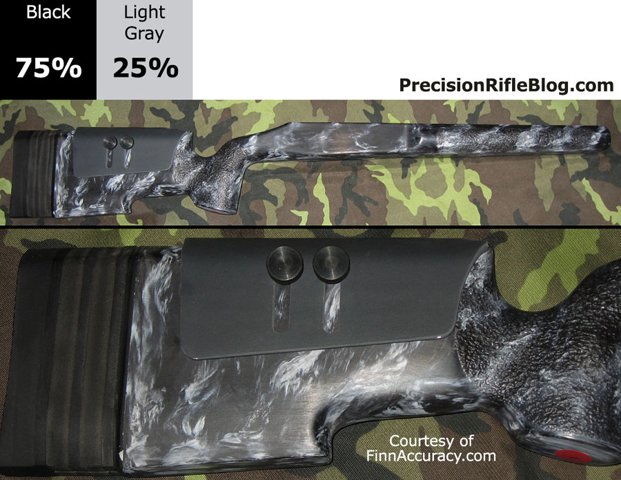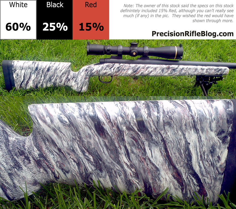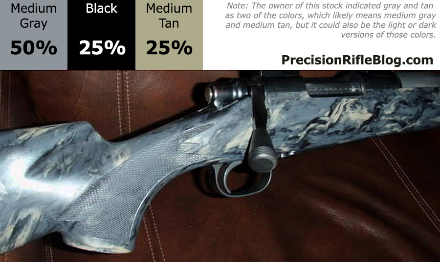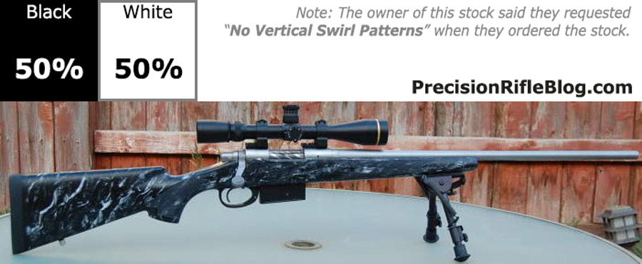 The photo gallery below has McMillan stock pictures that are primarily gray or strictly black & white. These represent some of the most popular stock colors for a McMillan marble finish. Grey stocks especially good with stainless steel actions & barrels.