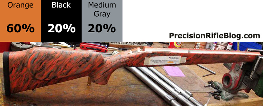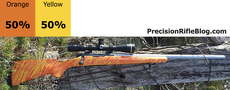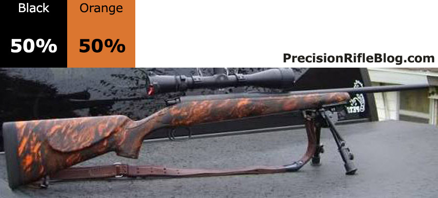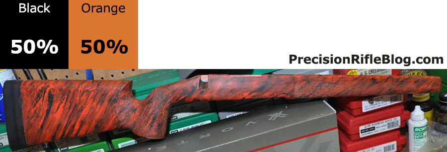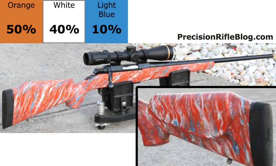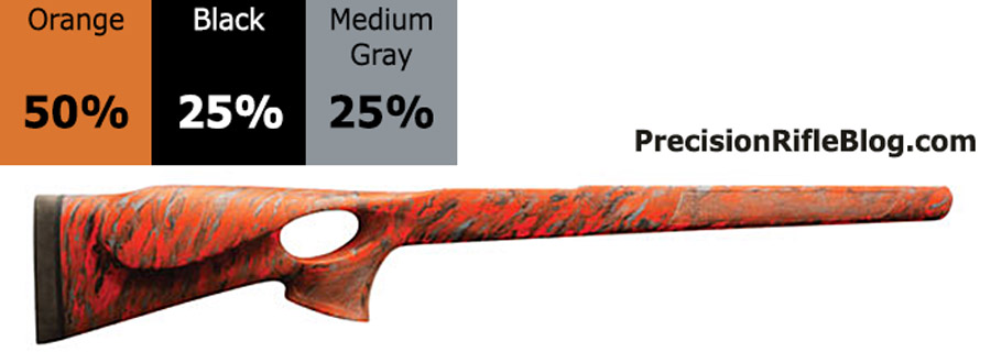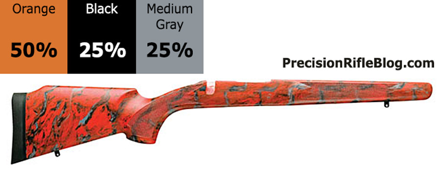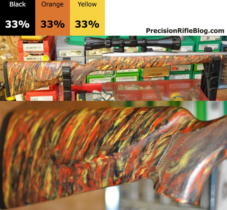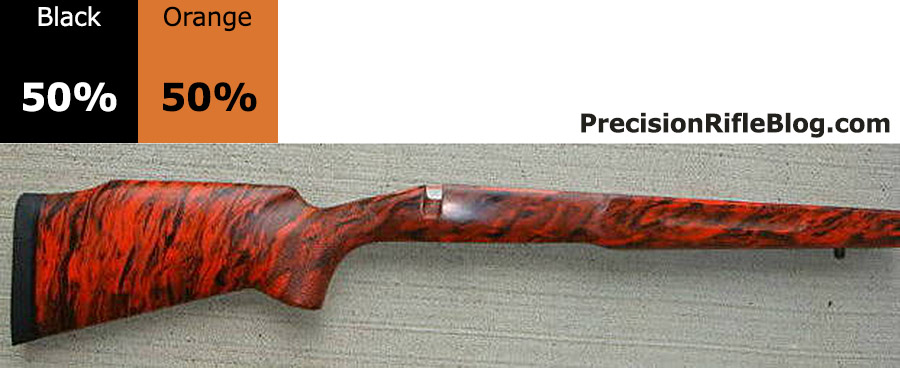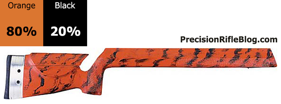 These are all photos of McMillan marble stocks that are primarily orange or yellow. These are the brightest of the McMillan stock options, and can really help your stock standout and represent your unique personality. These color ratios are very popular among benchrest and competition shooters.
