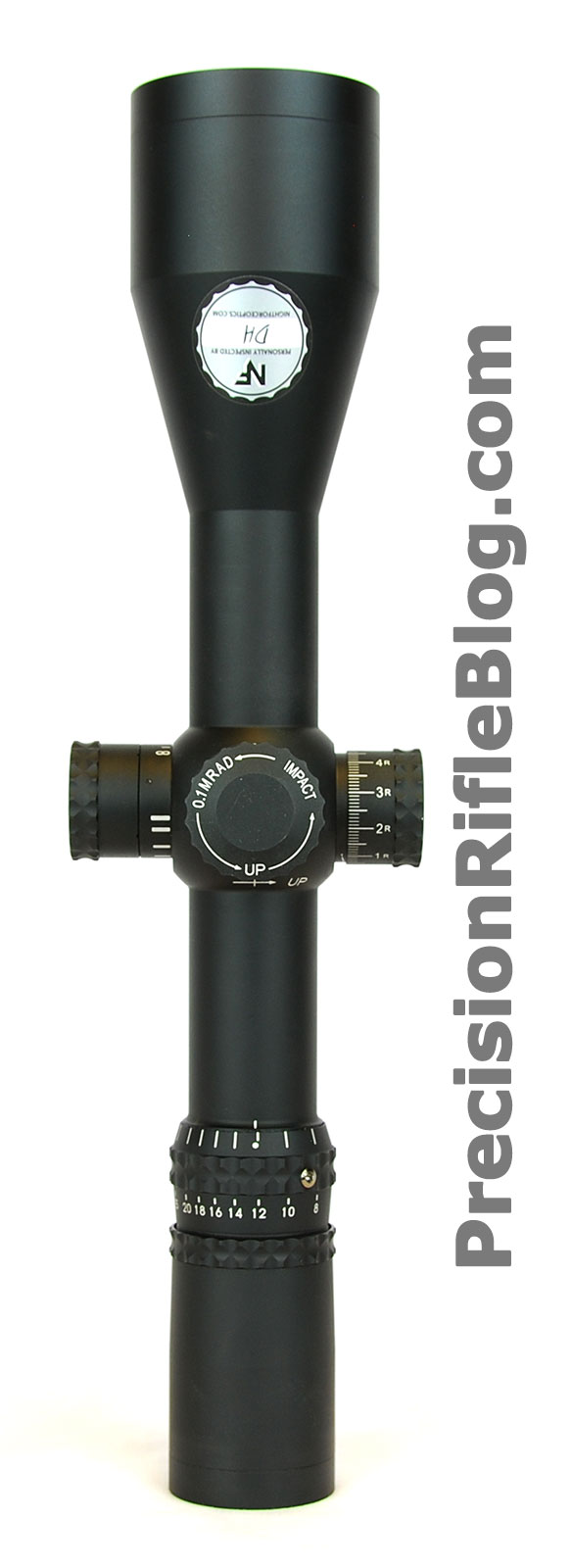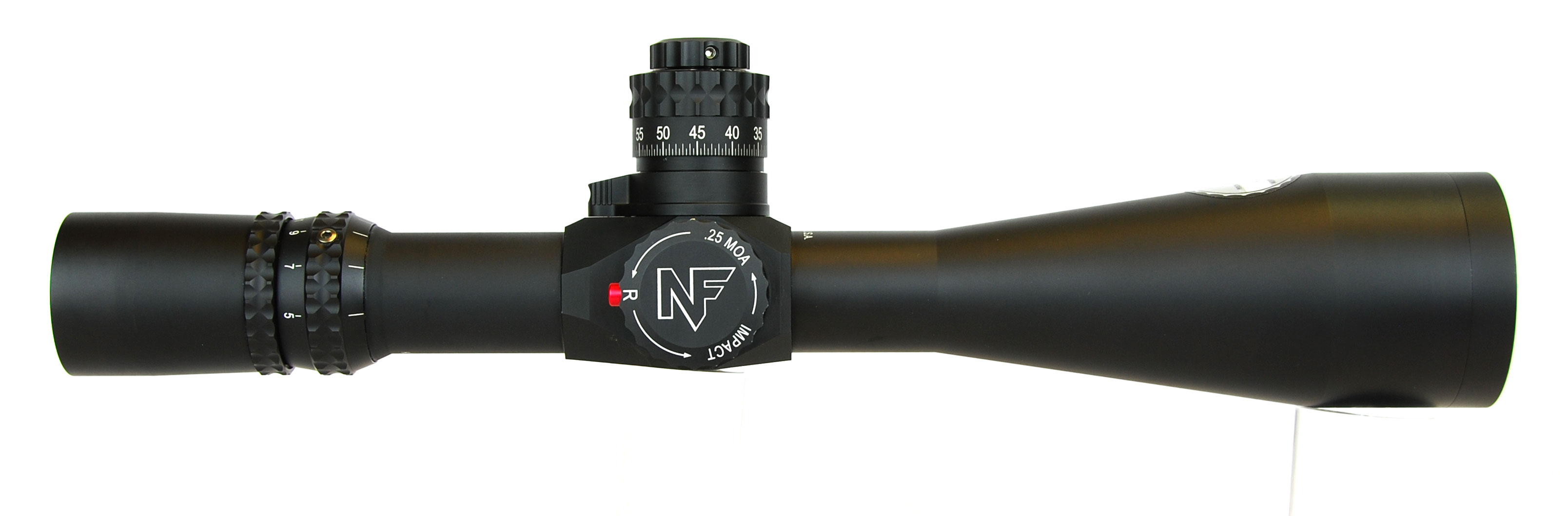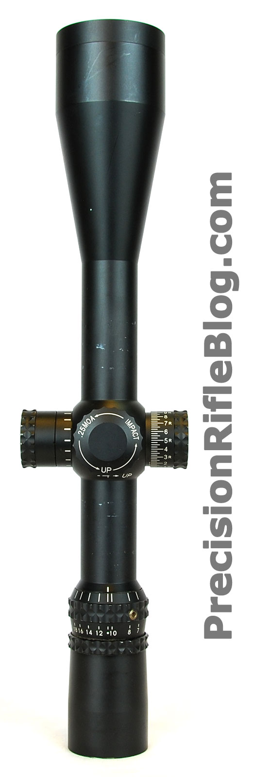 - Largest objective bell of the 18 scopes tested. This was even bigger than the bell on the US Optics ER25 5-25×58, which has a 58mm objective. This likely wouldn’t be an issue, but just means it’s not quite as compact.