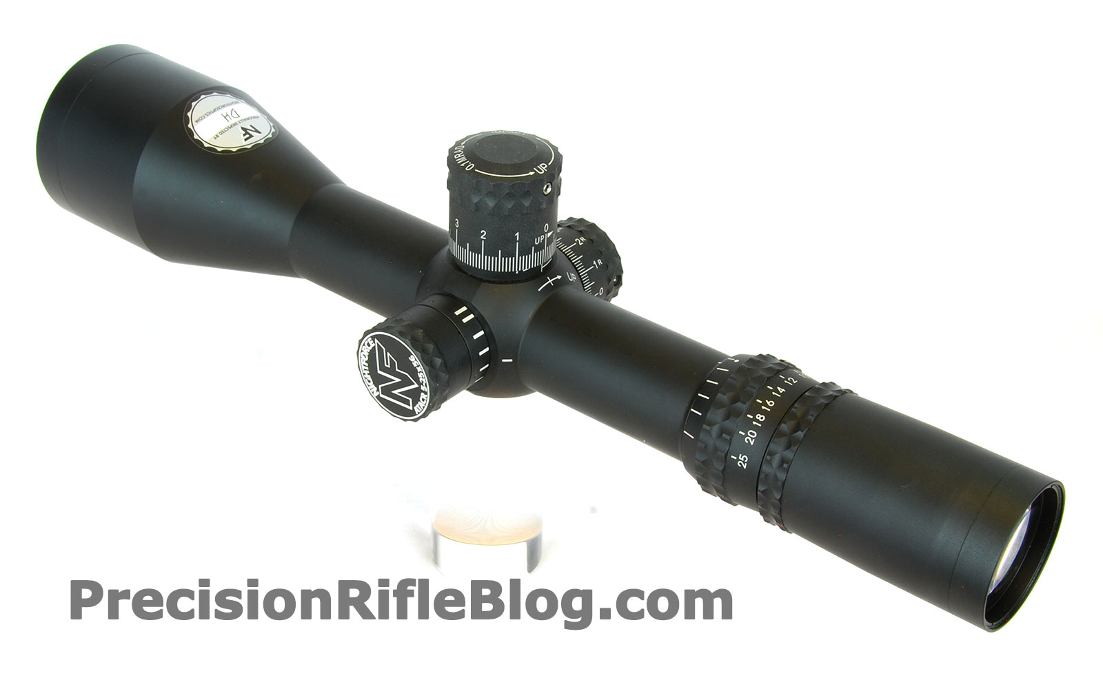 - Very heavy – Heaviest scope tested at 46.3 ounces. I’ve heard many shooters complain about the weight of the Schmidt and Bender 5-25×56, and this scope is 6.6 ounces heavier than it.