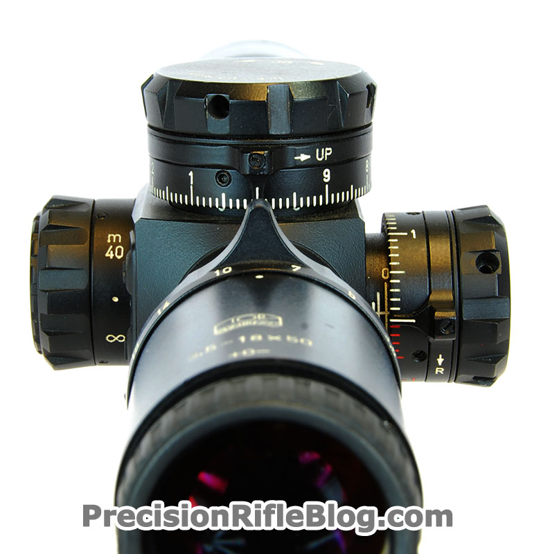 - MTC clicks are very stiff – MTC stands for More Tactile Clicks, which just means the turret is designed to give feedback you can sense with touch to indicate when you’re at certain adjustments. It does that by making certain clicks slightly more “sticky” than others. On this turret those are on every whole number (0.0, 1.0, 2.0, etc.). MTC designs theoretically allow the shooter to sense where they are on the adjustment just by feel. That means you don’t have to lift their head from behind the scope or could make adjustments in pitch black. Some guys like MTC turrets, others hate them. I haven’t personally been in a scenario where I needed them, so I’m not a huge fan. One downside of MTC designs is that it is easy to accidentally overrun your target adjustment, because you have to apply so much pressure to “break out” of those “sticky” clicks. For example, if you need to adjust from 0.0 to 0.1, you may spin past it to 0.3 or 0.4 and then have to back off a few clicks to get to 0.1 (hopefully without landing back on 0.0 and repeating the whole process). This is especially true for the Schmidt and Bender MTC turret, because it has a stiffer clicks than most scopes.I read a review by ILya Koskin on a Schmidt and Bender scope with these MTC turrets. Here is what he said: “Of the two S&B scopes, the first one I got my hands on was brand new straight from the dealer, and the turrets were very stiff. When that stiffness was combined with the MTC click stop, I found it virtually impossible to go one click past the MTC. I spent a fair amount of time with that scope, and I do not think I ever managed to get confident with adjusting the turret without getting visual confirmation. … I still do not like the whole MTC business. I understand the reason for it, but it is not my thing. Every MTC implementation I have seen to date makes “no eyes” operation virtually impossible for me. … Since a bunch of people out there clearly like MTC, I must be odd, which is not all that surprising.” I guess I must be odd too, because I have the same exact impression.